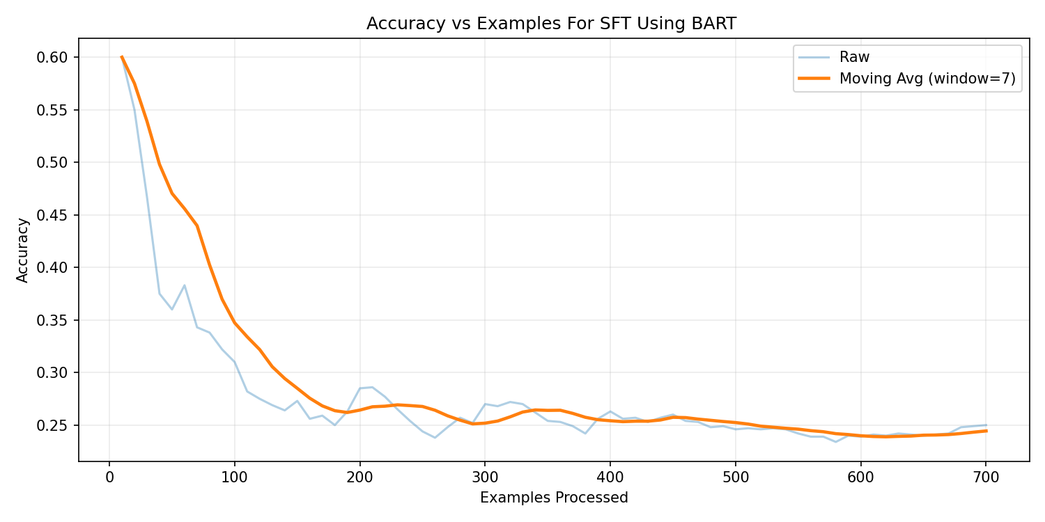 BART-Base → SFT: 24% | RLHF: 21.23%