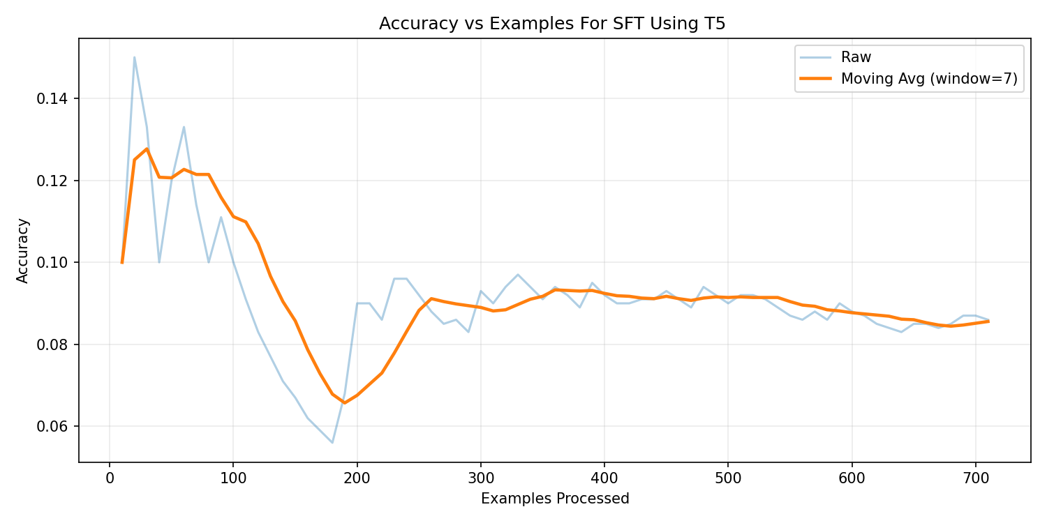 As suggested in the project guidelines, T5-small was initially selected as the baseline architecture. Both supervised fine-tuning (SFT) and reinforcement learning (RLHF) experiments were conducted to evaluate its suitability for structured SQL generation.